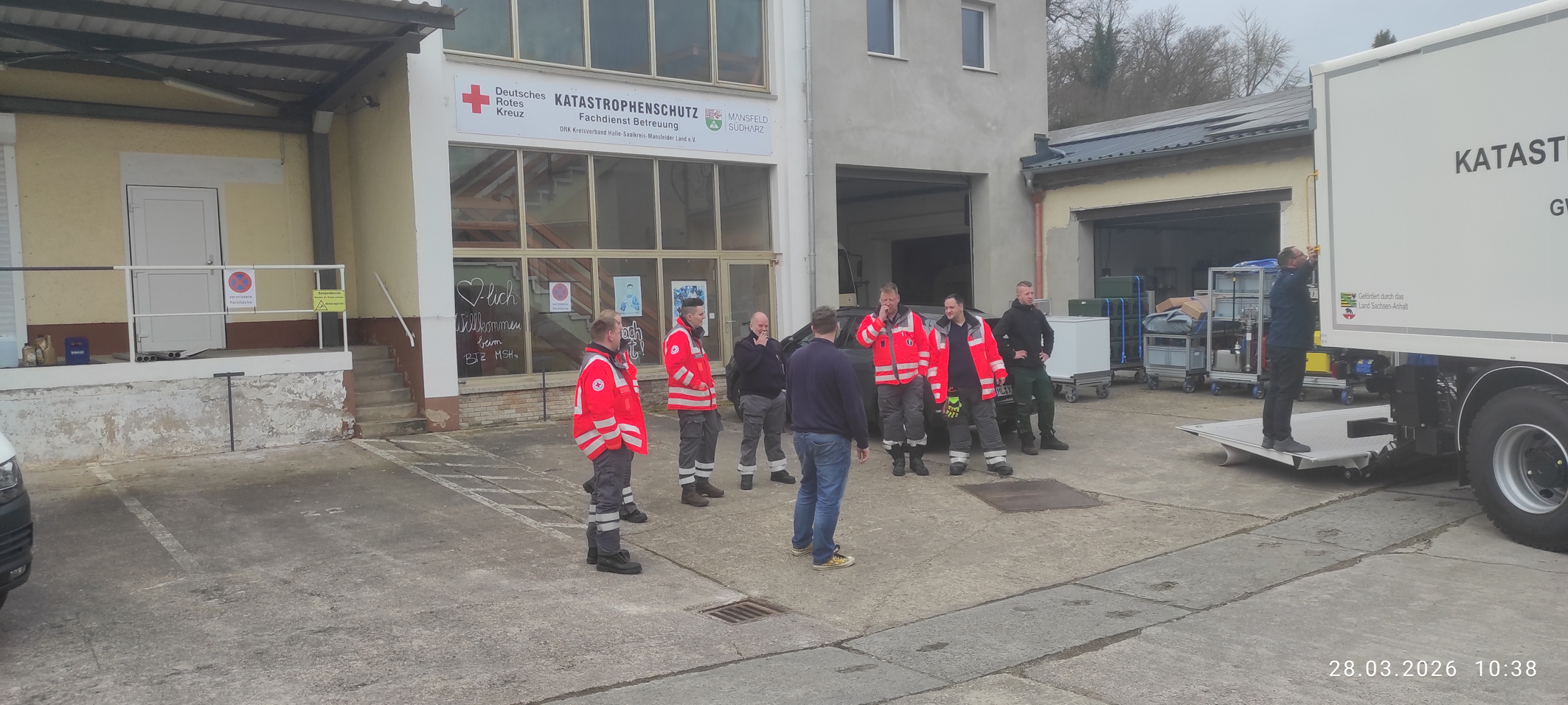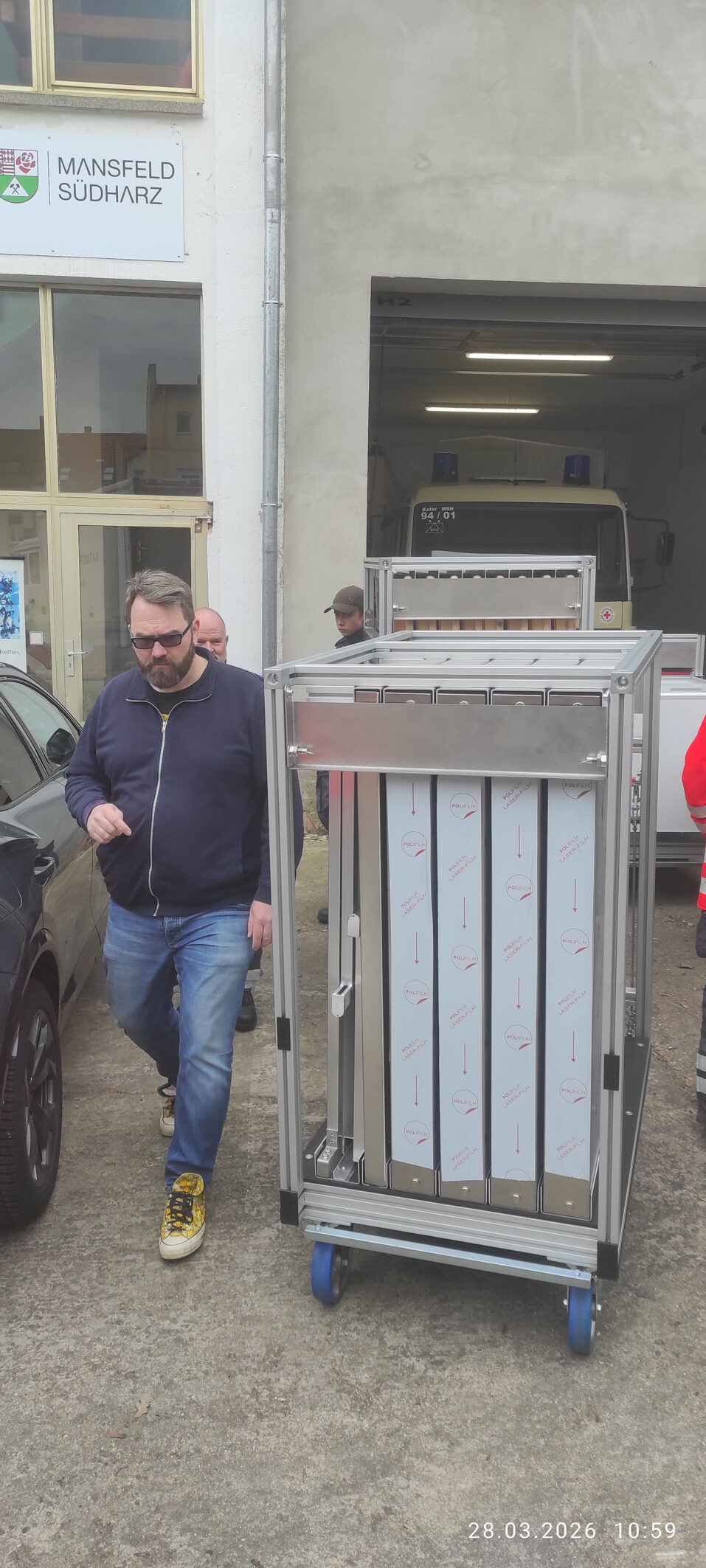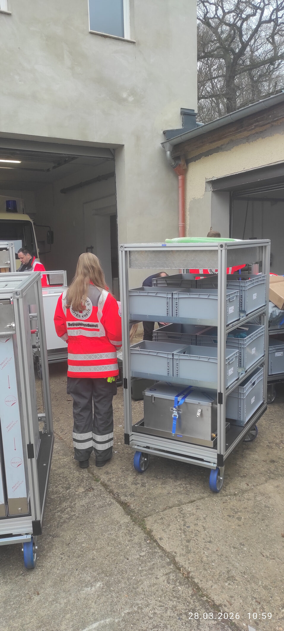 Diese hatten am 18.03.2026 aus einer Zentralen Beschaffung vom Land Sachsen-Anhalt einen neuen Gerätewagen Betreuung erhalten und für diesen Tag eine erste Einweisung sowie Geräteüberprüfung angesetzt. Dies nutzen wir spontan um uns einen Eindruck von dem neuen Fahrzeug und den darauf verlasteten Materialien zu machen.