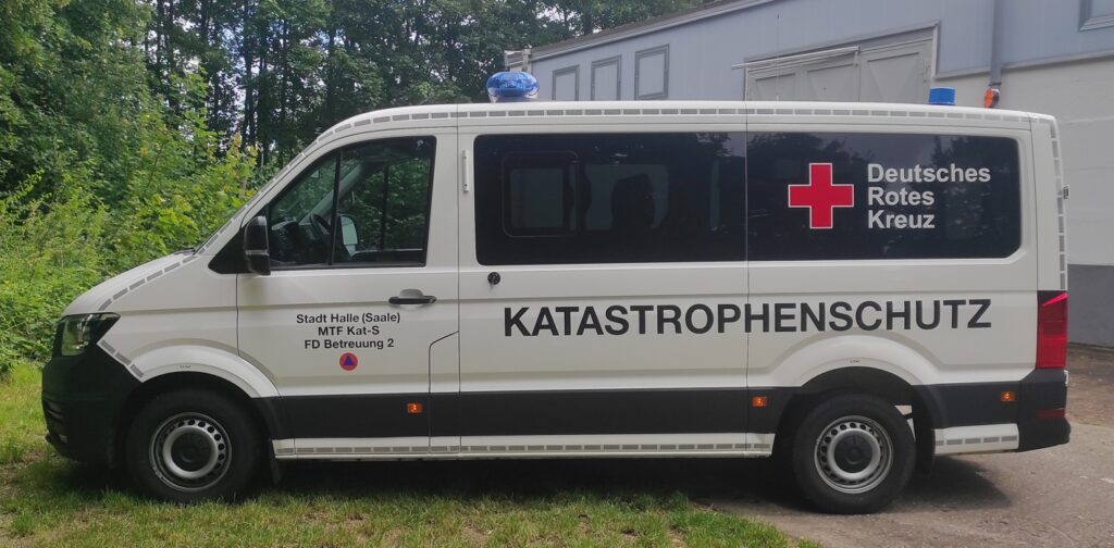 Mannschaftstransportfahrzeug (MTF) Gruppe Unterkunft des Fachdienst Betreuung 2 im Katastrophenschutzes der Stadt Halle (Saale), stationiert beim DRK Kreisverband Halle-Saalkreis-Mansfelder Land.